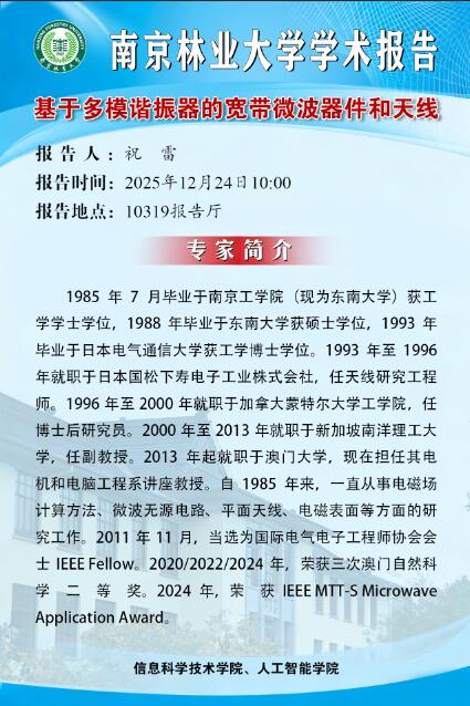 报告题目:基于多模谐振器的宽带微波器件和天线